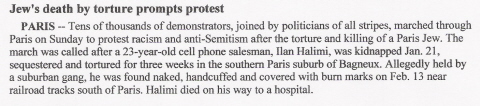 The latest incident is coverage of the by a French Muslim gang that deliberately targets Jews for torture, ransom and/or death.