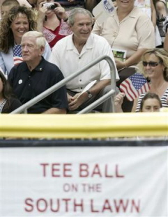 Only the man-hater who happens to head the White House celebrated. On Wednesday, President Bush hosted the University of Arizona Women’s Softball Team at 1600 Pennsylvania Avenue, posing with them in the Rose Garden. And, while soldiers are getting blown to bits all over Iraq and Afghanistan, Bush focused on our nation’s important priorites. He hosted a softball tee with them on the South Lawn.
