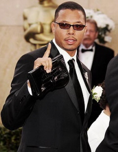 Today’s Wall Street Journal features fashion advice for men on how to wear your “man bag.” But don’t worry, though the paper recommends having different bags to go with different outfits (I think I’m the only woman in America who doesn’t do this; one or two purses is enough, thanks), it says that evening bags are off limits for men . . . for now. Well, thank Heaven for small favors. And tell that to actor Terrence Howard (see pic, below).