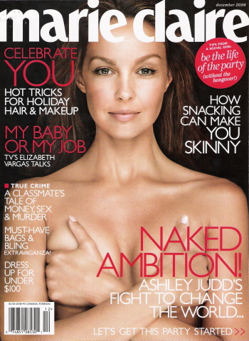 It’s lovely how women who think they’re so liberated they’ll cheer anything anti-American, are embracing their future enslavers. Don’t let the cover of December’s Marie Claire fool you. Inside are not photos of Ashley Judd’s breasts, like on the cover. Instead, lurking inside is a 13-page spread of Islamofascist fashion . . . and an article cheering a lawyer for Gitmo terrorists. Yes, this mag is full of chic . . . or full of something that sounds similar:
