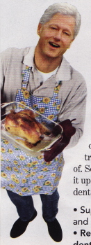 * Announce his favorite recipe to the press (Hillary couldn’t bake cookies, but she claimed she made “a mean tossed salad;” Bill could make peanut butter and jelly sandwiches, with a side of oysters for that libido-enhancement, or Viagra-frosted cupcakes);