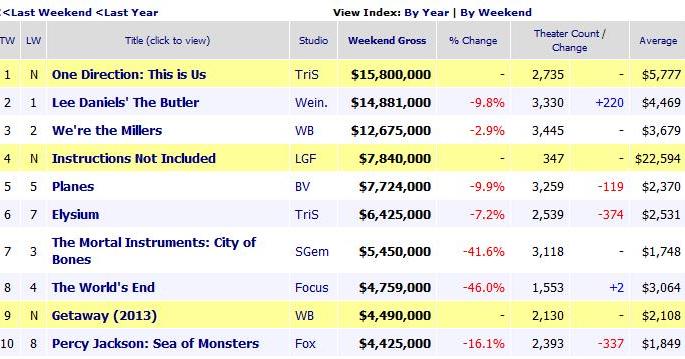 Foreign language films are almost never in the top five. And the movie’s success in edging out “Getaway” is even more stark, when you consider that the Spanish movie was shown on only 347 screens versus 2,130 screens for “Getaway.” And compare “Instructions'” $22,594 per screen take versus “Getaway’s” $2,108 per screen. Even the over-hyped, fictional disgrace, “Lee Daniels’ The Butler,” which added 220 screens this week for a total of 3,300 screens, only averaged $4,469 per screen or about a fifth of what the Spanish comedy took in. Yes, “Getaway” is a crappy movie (read my review). But that’s not the point, since a summary of the plot of “Instructions” (as found on IMDB) sounds like it could have been made by the Hispanic Tyler Perry: