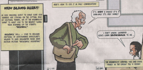 We used the term “” to describe Ford Motor Company’s waffling on whether or not to advertise in gay media. Now, USA Today has stories on the “Brokeback” phenomenon now pervading all of pop culture and the Brokeback humor. These “residuals” from the movie “” are not a great development.