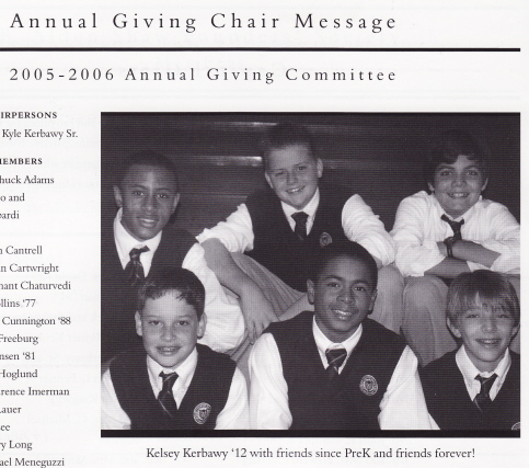 Then, I happened upon the latest Country Day annual report–sent to the school’s mostly White, mostly liberal donors and parents–at the gym. As I looked through, there wasn’t anything about Black basketball players. But check out the picture of Black students that the school markets to White limousine liberals. (A similar picture of Black female students appears on Country Day’s website.)