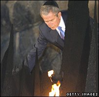 Today, Bush visited the Israel national Holocaust museum, known as “Yad VaShem“ [“A Hand and a Name”]. It was all about symbolism–he donned a yarmulke and lit a memorial candle. And he declared that America should have bombed Auschwitz.