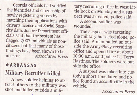 * One account of the Muhammad Muslim assassination at the Arkansas recruiting center features this nice little quote:
