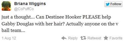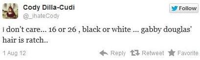 Tags: Black racism, Black self-hatred, Black women, Gabby Douglas, Gabby Douglas hair, ghetto, London Olympic Games, London Olympics, Not Black Enough, Olympics, plantation, ratch, ratchet, self-hating Black women, too White, Twitter