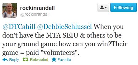 When Republicans provide liberal lite, as Rove and Coulter served us up with in Romney, we’ll lose. Voters will always pick real Coke over the dollar store generic fake. Of note is that all of the people who gushed all over television about this are White people, and yet, sadly, we haven’t replaced them with the “end of liberal White TV anchors and talking heads.” The Roves and the other establishment operatives of the world are wrong when they say you need a less conservative candidate to win. Tell it to John McCain and to Mitt Romney. They were the moderates, and they lost because they weren’t conservatives and there was no real choice. Mitt Romney lost because he stood for nothing, other than, hey, I’m the other guy. The Republicans did phoning, while the Dems drove out and bused people to early vote all over Florida. Time to enter the 21st century, GOP . . . and to get an army like that of the unions. See Romney campaign worker Donna Cahill’s tweet, below, and a response by one of my Twitter followers, “RockinRandal”: