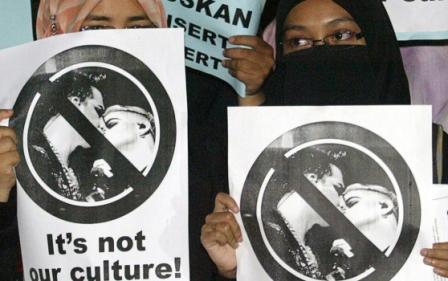 “But it’s always interesting how the media is never up in arms–nor is the gay community–when MUSLIMS are intolerant of their lifestyle. When it’s Christians or Jews, the gay community is on the offensive, destroying Mormon churches over the Mormons’ support of Prop 8 (as I noted on this site), but not mosques, even though Muslims supported Prop 8, too.”