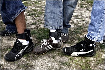 The buzz around Immigration and Customs Enforcement (ICE) headquarters in Washington is all about Sunday’s illegal alien rally in Washington. While ICE agents were ordered to stay away, they were essentially mocked because illegal aliens–who long ago should have been deported–instead displayed their Detention and Removal Operations (DRO) monitoring and tracking ankle bracelets. Three illegal aliens who were arrested at Timbuktu restaurant in Maryland were paraded on-stage for the other illegal aliens to show off the arrest bracelets. The Washington Post took pictures of Esvin Blanco, Oved Vigil and Edwin Mazariegos, happily showing off their new jewelry. Two of the photos are posted above.