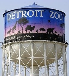 Somehow, the Detroit Zoo–which, while now independent, is funded in large part by taxes and grants from both the City of Detroit and the State of Michigan–has $200,000 to waste on removing all of the paint from a completely fine (and fairly new) mural on a water tower next to the zoo, cleaning it, and posting a decal of the entire mural. The water tower does not contain water and hasn’t functioned as a water storage unit for decades. It is nothing more than a billboard.