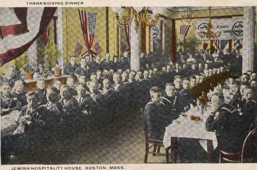 In contrast, Jews have been here and help establish and found the United States from the very beginning. And we celebrate it and express our thanks with the same heartiness and gratefulness as the rest of our fellow Americans. Above is a postcard supplied by the Jewish Welfare Board to U.S. Soldiers during World War II, so they could write home on it. The postcard shows a Thanksgiving dinner sponsored and paid for by the Jewish Welfare Board, so Jewish and Gentile U.S. Soldiers.