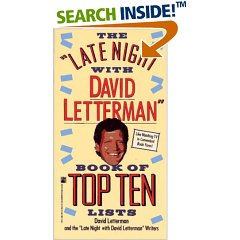 My dad bought me two books of David Letterman Top Ten Lists. In thumbing through them, I was amazed at what was allowed on TV before 9/11, which would never–nevuh evuh–make it on the air today in the days of CAIR/MPAC/ADC/ISNA/MSA/MAS and the pandering media who whitewash Islam. That we would never hear these today is a sign of how pan-Islamist PC we’ve gotten.