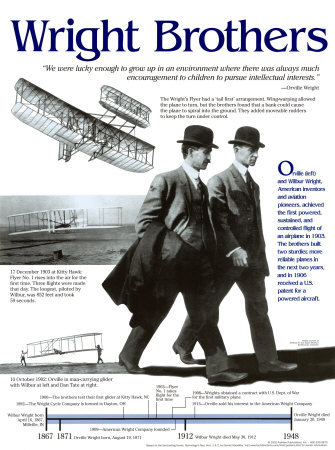 Historians say the Wright Brothers, although born four years apart, had the emotional and intellectual bond of twins. They owned a bicycle shop in Dayton, Ohio. They lacked college degrees, but shared a restless, vigorous intellect and became self-taught aeronautical engineers before there was such a profession. Wilbur was the visionary. Orville was the tinkerer and inventor.
