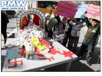 Carl in Jerusalem has all the details, the video, and this very disturbing picture of a Palestinian model “crematorium” with “burning” Palestinian dolls designed to show children that Jews cremated Palestinians.
