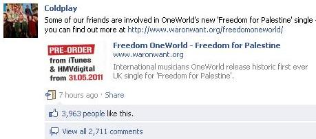 Tags: Anti-Israel, anti-Israel bands, anti-Israel celebrities, anti-Israel rock stars, Chris Martin, Coldplay, Coldplay anti-Israel, coldplay anti-Semitic, Coldplay is anti-Israel, Coldplay is pro-Palestinian, Coldplay supports Jihad, Dave Randall, Durban Gospel Choir, Facebook, Faithless, Freedom to Palestine, Gwyneth Paltrow, Hamas, IDF, Israel, Jamie Catto, LSK, OneWorld, Palestine, Palestinian, Palestinian State, Paul Collins, Pro-Palestinian bands, pro-Palestinian celebrities, Pro-Palestinian rock stars, Pro-Palestinian singers, video