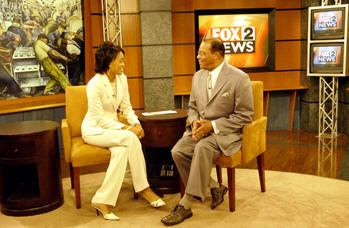 I cannot imagine Monica Gayle or Ron Savage, who are White anchors on FOX 2 News, being allowed to have David Duke on the show for a single minute, much less what amounted to over 12 minutes of gushing airtime for Farrakhan. I cannot imagine them saying to Duke on the air: “Thank you for your commitment to ‘Our People.'” But FOX 2 management allowed Stinger to do so with his Black counterpart Farrakhan. I thought the station’s slogan was “FOX 2 News, Working For You.” NOT “FOX 2 News, Working for ‘Our People.'” I left messages with both Hahn and Murri over this interview back in 2005, but they never returned my calls. They did not care that it is a blatant conflict of interest that Stinger was sleeping with the man who was a key national figure in Farrakhan’s “Millions More Effort.” As pseudonymmed FOX 2 News reporter “Scott Lewis” noted last week, Stinger’s relationship with Rayford Jackson was “considered her personal business.”