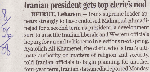 And, as I’ve also noted, the papers other “editors” repeatedly gaffe their headlines. They once noted that the “West Bank” was in Pakistan. They’ve noted that Hillary Clinton and Osama were meeting. And in today’s print copy of the paper, they’ve officially recognized what Iran wants . . . that Lebanon is officially part of Iran:
