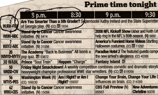 Instead, FOX is airing two hours of “Are You Smarter Than a 5th Grader?” And none of the FOX-owned cable networks are broadcasting, “Stand Up to Cancer” either. By making this programming choice, Murdoch and Prince AlWaleed are showing us they are neither smarter than a 5th-grader, nor display even 5th-grader levels of empathy and compassion.