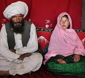The guy in the picture looks very proud. His fellow pedophiles are probably quite envious because he now has a real female and will longer have to entertain bacha boys (unless he wants to).