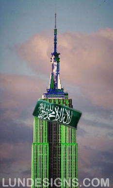 Are you that clueless? Do you not know that green is the color of Islam? Militant Islam? How does it feel to wear the same color as the lights of the Empire State Building when it honored Ramadan? Are you that ignorant or do you not realize that you’re signifying your unity with the Saudi flag, the HAMAS flag, the green on the Hezbollah flag, and the green that’s on virtually every Islamic nation’s flags?
