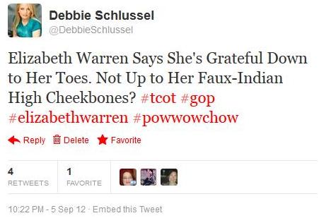 My brother (who is as Conservative as I am) hates her too. He says he does an Indian Howl every time he sees her signs out and about (and he is a funny guy…I’d die laughing if I saw him do it!). My sister who was not so Conservative is coming around and hates her guts more than my bro and I. It’s funny to hear her go on about how much she annoys her. She has at least 3 peeps not voting for her fraud arse here in Boston.