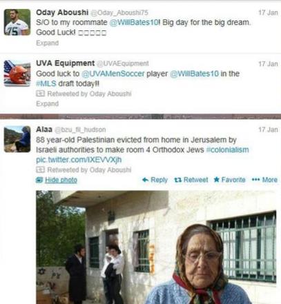 I was out all day representing clients at hours and hours of depositions. But, while I was out, the New York Jets resident Jew-hating Palestinian Muslim player made himself and his anti-Israel BS known to the world. I knew this day was coming: when anti-Semitic bigots of Palestinian descent like Oday Aboushi would use their athletic podiums to spread their anti-Semitic, anti-Israel hate. Yes, there have been many other anti-Semitic pro athletes who’ve made outrageous comments against Jews. But, now that there’s a HAMAS-sympathizing Palestinian Muslim Arab on the Jets–Aboushi was drafted just recently at the 2013 NFL Draft–he has a forum to attack the largest population of Jews in any city in the world. The self-proclaimed “first Palestinian drafted by the NFL” calls Israel the “Nakba” [Arabic for “disaster” or “catastrophe”] and retweeted anti-Israel crap on Twitter back in January (and has repeated with other similar crap ever since):