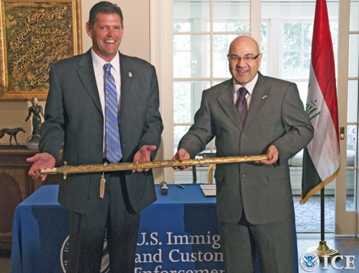 ICE: We Keep You Safe From Saddam Hussein’s Sword, But NOT Illegal Aliens (ICE Director of Investigations Jim Dinkins Poses w/ Iraqi Ambassador to US & Saddam Hussein’s Sword)