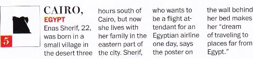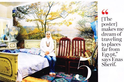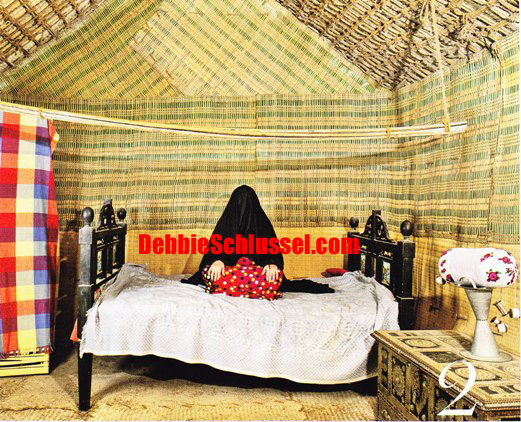 Oh, and by the way, in case the full-ninja look ain’t your thing, Marie Claire also shows you the ornately painted bedroom of hijab-encrusted Enas Sharif, 22, born in the desert, but now of Cairo, who wants to be a flight attendant to realize her “dream of traveling to places far from Egypt.” Gee, I wonder why. They forgot the last part: “and never coming back to Egypt.”