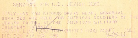 Memorial Services for America’s Fallen Jewish Soldiers at Anzio, Italy During World War II, September 25, 1944 . . .