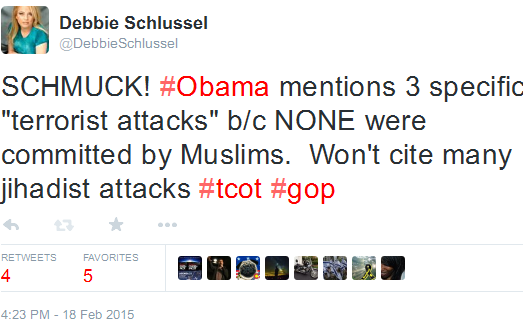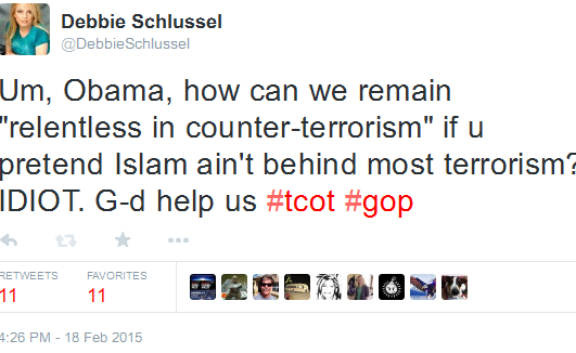 “Frickin’ idiot or total liar–take your pick.” – Debbie Schlussel