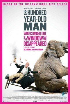 * “The 100-Year-Old Man Who Climbed Out the Window and Disappeared“: A very old, but very lucid and independent Swedish man discovers that a wolf (or fox?) has killed his dear pet cat. And, so, he makes a bomb with hot dogs (or sausages?) tied all around it, blowing up the wolf (or fox). Because of that, he’s put in a nursing home. But he’s bored and feels he doesn’t belong there And, on his 100th birthday, the Swedish man decides that nursing home life is not for him. So, he sneaks out of his first story window and embarks on an adventure, taking a bus to the most distant location he can afford, which turns out to be the countryside not far away.