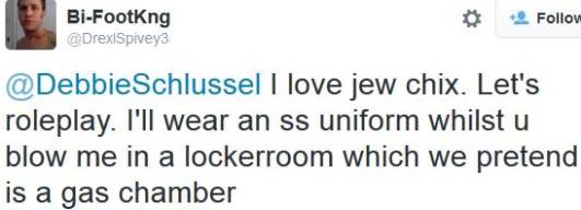 Honestly, you have better things to do with your time than to give these twitter trolls the satisfaction of writing about them. They feed off it. This specific loser has whopping 78 followers. Nothing more than a garden variety, POS troll. Block, report & move on.