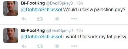 I’m on the receiving end of absolutely depraved, warped, disgusting comments and attacks, hate, and threats of violence on a daily (sometimes moment-ly) basis, and I post very, very few of them. Today, I received this absolutely disgusting Jew-hating tweet from an apparently British and Muslim bisexual foot fetishist sicko, who goes by the screen name, “Bi-FootKng.” His Twitter profile banneris a pic of Batman anally raping a woman. Today when I tweeted (follow me on Twitter) about Islamic terrorism, he sent the sickening anti-Semitic crap, below, to me.