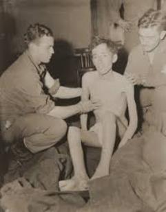 These men are the American soldiers of Berga, a “satellite” of Buchenwald–among the most brutal Nazi concentration camps. They are men like Hans Kasten IV and Donald Hildenbrand and Anthony Acevedo. Those three men lived, but many others in their shoes, like John Simcox, did not. They were among the thousands American soldiers who were captured by the Nazis in 1945 when they were on the front lines in Germany in the Battle of the Bulge. Of those thousands, the Nazis demanded to know which men were Jewish. Some could not escape this as they had an “H” (for Hebrew) on their dog tags and/or had Jewish surnames, like Shapiro. The men were all sent to various buildings at a camp, with each building electing a leader to be the intermediary with the Nazis. One building elected Don Hildenbrand, and he and Kasten refused to identify which of the men were Jewish. As a result, the Nazis rounded up all of those in the building with Jewish-sounding names, all of those who “looked Jewish,” and the men who refused to identify the Jews. They were sent to Berga, where many of them died. They were all heroes who gave their lives, rather than point out the Jews to the Nazis.