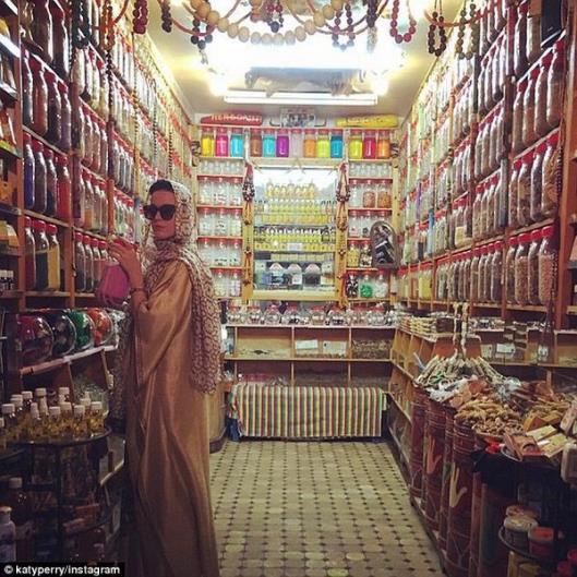 Irony #3: Katy Perry supports jihadist oppression of women and the normalization of jihadist Islam, (and also has never denounced her father’s anti-Semitic tirades). Maybe you missed Perry’s Instagram photos of herself, proudly wearing a hijab–a Muslim headscarf–and an abaya–a Muslim robe, both of them Muslim clothing of oppression. She glamorized them, like something out of a Vogue photo shoot. Maybe you also missed the Muslim propaganda video she executive-produced in January in response to the election and then-upcoming Inauguration of Donald Trump. The video, entitled “Is History Repeating Itself?” was billed as a “public service announcement against hate.” But in fact, it was a propaganda video against Trump’s proposed Muslim ban (an idea he already abandoned during the campaign and has never pursued) and “Muslim registry” (an idea he never espoused in the first place). The video likened Muslims to Japanese Americans during World War II. “Don’t normalize hate,” Perry tweeted to her followers on Twitter.