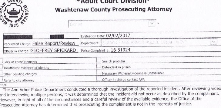 Earlier this year, I filed requests under the Michigan Freedom of Information Act with the Ann Arbor Police Department for the names of the two women who perpetrated these hate crime hoaxes and for the unredacted police reports about the investigations of their falsely filed complaints. I believe it is in the public interest to know the names of people who cry wolf, make false accusations against and defame an entire race and gender, and waste taxpayer money on police investigation wild goose chases, endangering victims of real crimes.
